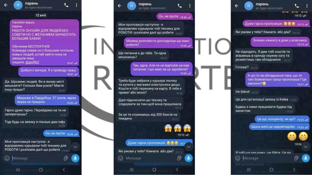 Recruiters specifically target Ukrainians already living in the EU — especially those without permanent employment, those who do not live in their own housing, and those willing to turn a blind eye to the questionable nature of the offer for “quick money.”