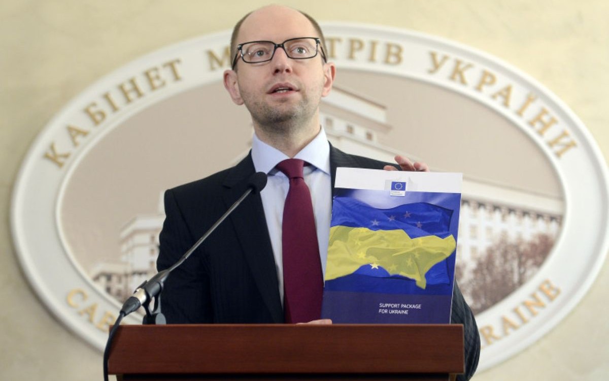 Iatseniouk, une ascension rapide dans les milieux de haute-finance. Il naquit en 1974, dans l’une des villes de l’Ouest de l’Ukraine, à Tchernivtsi. Il venait d’une famille d’intellectuels, d’un père professeur d’histoire et d’une mère professeur de langues. Il fit des études supérieures en droit, puis en contrôle financier, gestion et audit (1996-2001), avant de décrocher un doctorat en sciences économiques (2004). Bien que l’information soit difficile à trouver, il fut l’un des membres du Parti UNA-UNSO#, formation bandériste et néonazie patentée (vers 1992-1995), mais préféra s’éloigner pour des raisons de carrière. Durant ces années, il fut un conseiller juridique et avocat bientôt en vogue, dans divers cabinets de l’élite des juristes ukrainiens (1992-2001). Il s’engagea en politique en Crimée, nommé Ministre de l’Économie, par le Parlement de Crimée (2001-2002). Cette première fonction politique le propulsa finalement dans la capitale, bientôt recruté dans les milieux de la finance et nommé Président de la Banque nationale d’Ukraine (2003-2005). Mais c’est la Révolution Orange qui lança vraiment sa carrière politique. Dans ses fonctions de la Banque d’Ukraine, il était entré dans la coterie du futur Président Victor Iouchtchenko et d’un certain Joe Biden… Il fut nommé Ministre de l’Économie de l’Ukraine (2005-2006), puis l’un des chefs de l’administration présidentielle (2006-2007). Poursuivant son ascension, il fut encore nommé membre du Conseil d’administration de la Banque Nationale d’Ukraine et dans d’autres banques liées aux réseaux financiers américains. Il fut un court moment Ministre des AE de l’Ukraine (2007), avant de s’essayer aux suffrages et d’emporter un premier siège à la Rada (2007-2012). Cependant, il fut bientôt mis au placard suite à la victoire écrasante de Ianoukovitch à l’élection présidentielle de 2012. Lui même fut un candidat malheureux, avec un score de 6,69 %. Il apparut alors comme l’un des opposants les plus farouches dans la formation politique de Timochenko, le Parti Patrie.